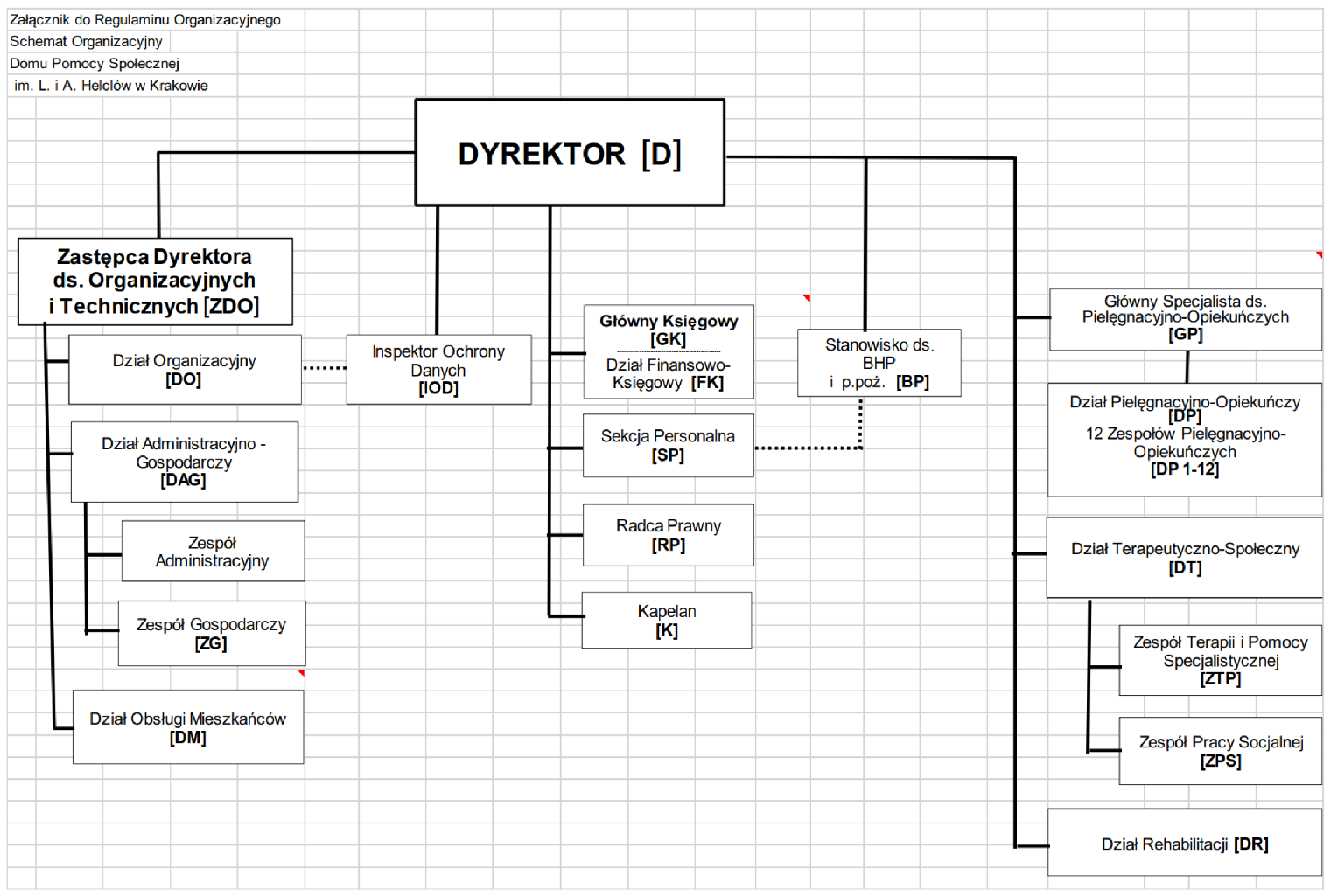 Komórki organizacyjne i stanowiska wchodzące w skład Domu Pomocy Społecznej im. L. i A. Helclów w Krakowie: