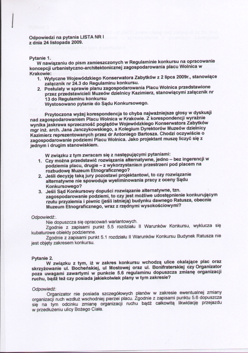Zapytania dotyczące konkursu wraz z odpowiedziami.