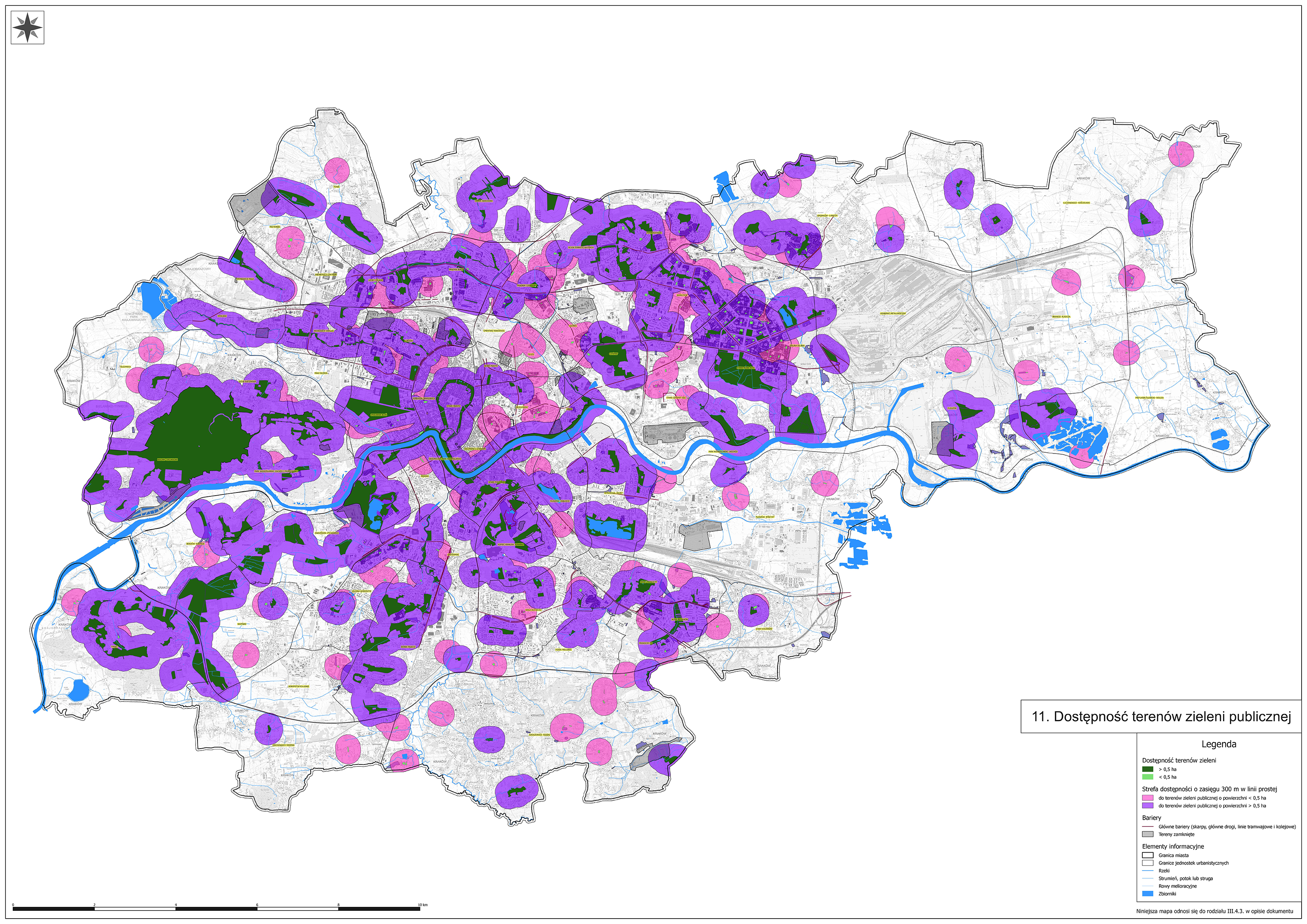 MAPA strefy dostępności do terenów zieleni pu