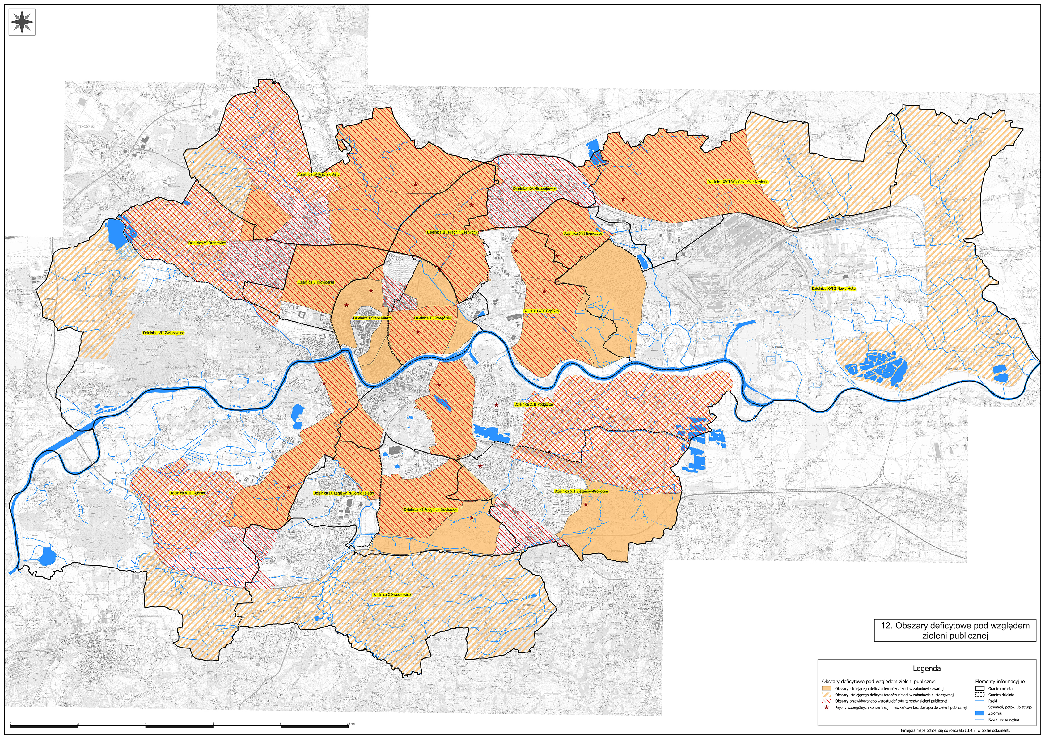 MAPA obszary deficytu pod względem terenów zieleni publicznej