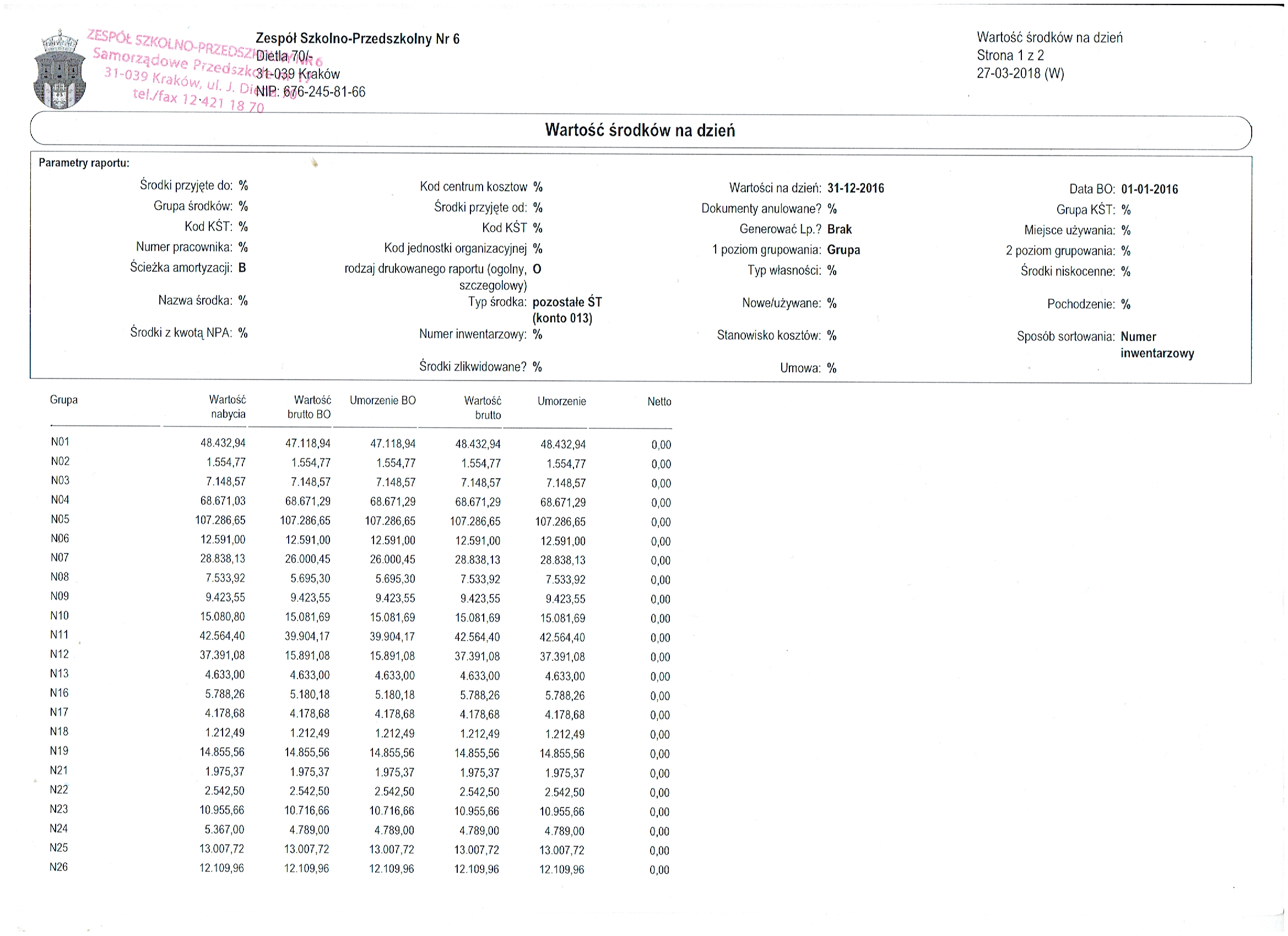 Wartość środków na dzien 31 grudnia 2016r.