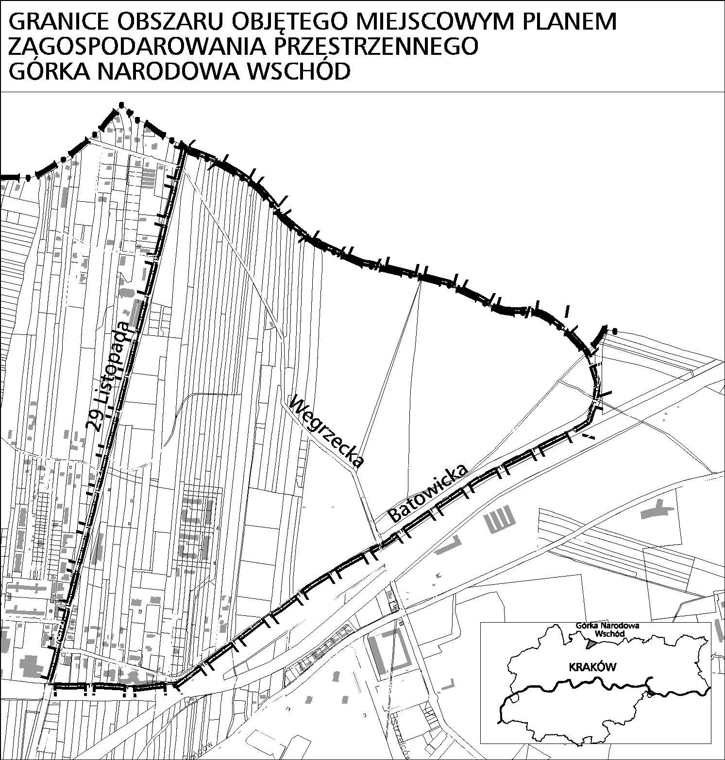 o podjęciu przez Radę Miasta Krakowa uchwały Nr XLIV/406/04 z dnia 14 kwietnia 2004 r. w sprawie przystąpienia do sporządzenia miejscowego planu zagospodarowania przestrzennego obszaru Górka Narodowa Wschód, obejmującego obszar ograniczony od północy granicą administracyjną miasta Krakowa, od południowego wschodu ulicą Batowicką, od południa linią kolejową Katowice - Warszawa, od zachodu al. 29-go Listopada.