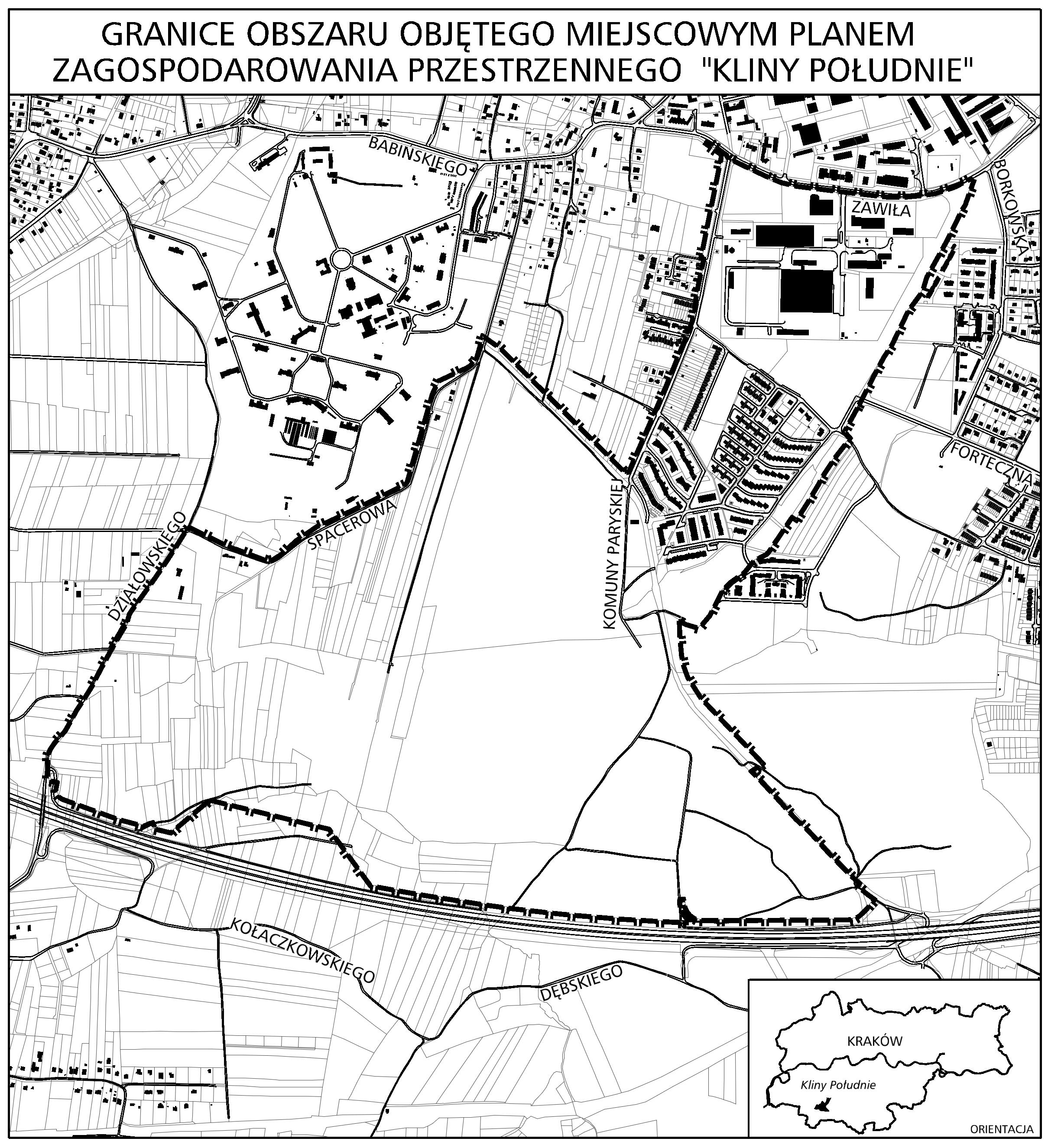 o wyłożeniu do publicznego wglądu projektu miejscowego planu zagospodarowania przestrzennego obszaru "Kliny Południe" oraz o wyłożeniu prognozy oddziaływania na środowisko, sporządzonej do w/w planu – w dniach od 7 lipca do 5 sierpnia 2008 r. (z wyjątkiem sobót, niedziel i świąt), w Biurze Planowania Przestrzennego Urzędu Miasta Krakowa, ul. Sarego 4, 31-047 Kraków, w godzinach: