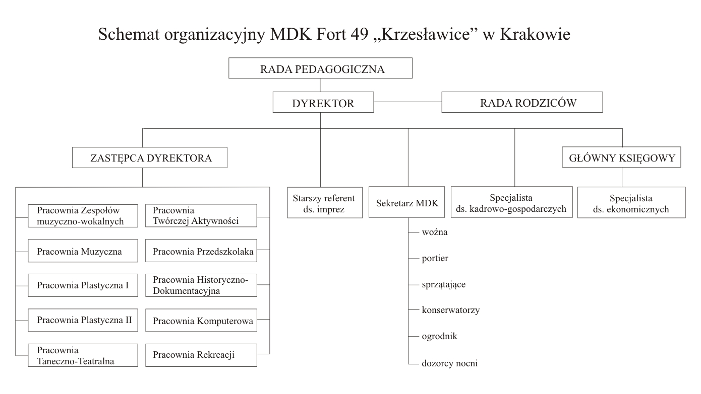 Organizację MDK przedstawia schemat struktury organizacyjnej stanowiący załącznik do Regulaminu.