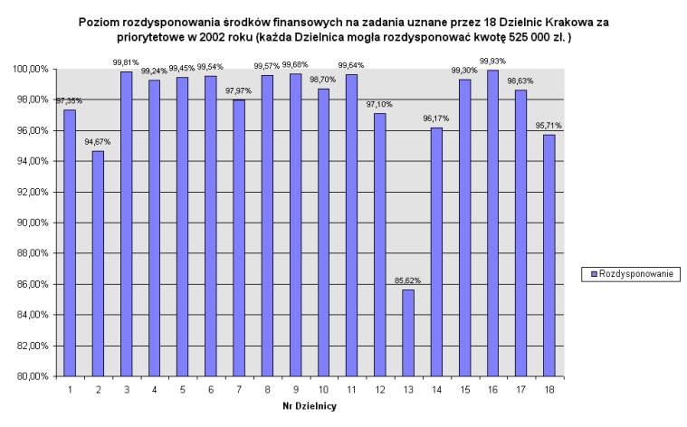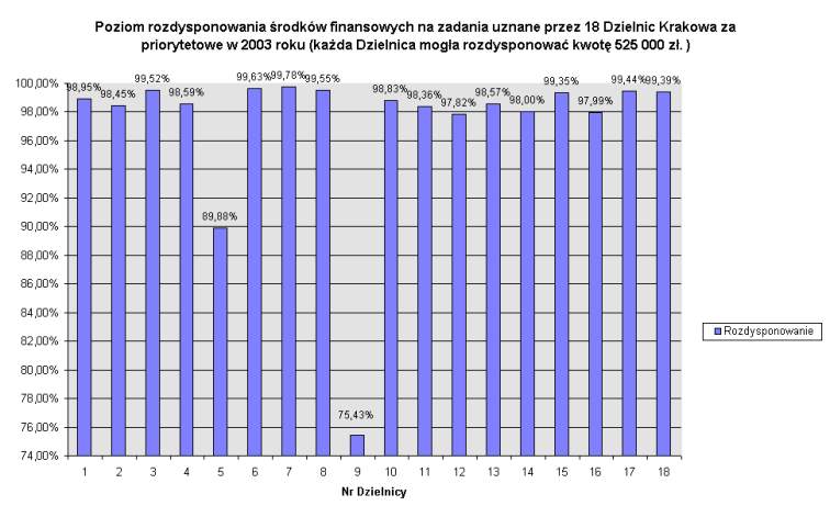 I. Poziom rozdysponowania środków finansowych przez Dzielnice Miasta Krakowa