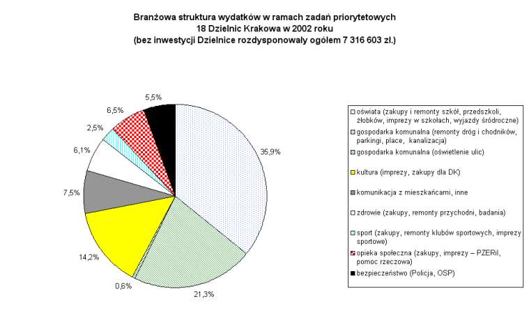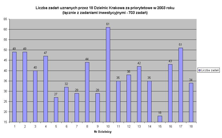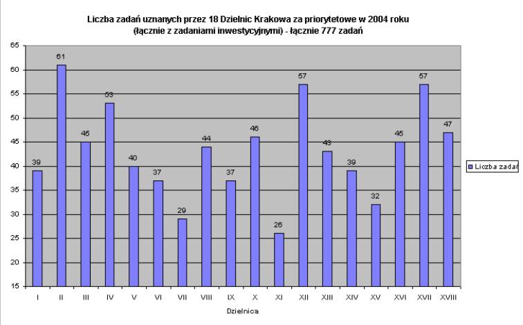 Wysokość środków finansowych przeznaczonych na realizację zadań priorytetowych ustala Rada Miasta w uchwale budżetowej. Do dyspozycji 18 Dzielnic przeznaczono na zadania priorytetowe w ramach zadań własnych Gminy następujące kwoty: