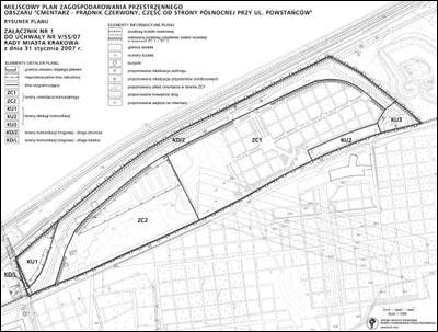 UCHWAŁA NR V/55/07 Rady Miasta Krakowa z dnia 31 stycznia 2007 r. w sprawie uchwalenia miejscowego planu zagospodarowania przestrzennego obszaru "CMENTARZ PRĄDNIK CZERWONY, CZĘŚĆ OD STRONY PÓŁNOCNEJ PRZY ULICY POWSTAŃCÓW" - ogłoszona w DZIENNIKU URZĘDOWYM WOJEWÓDZTWA MAŁOPOLSKIEGO NR 168, poz. 1217 z dnia 13 marca 2007 r. (Dokument pdf ze strony bip.malopolska.pl):