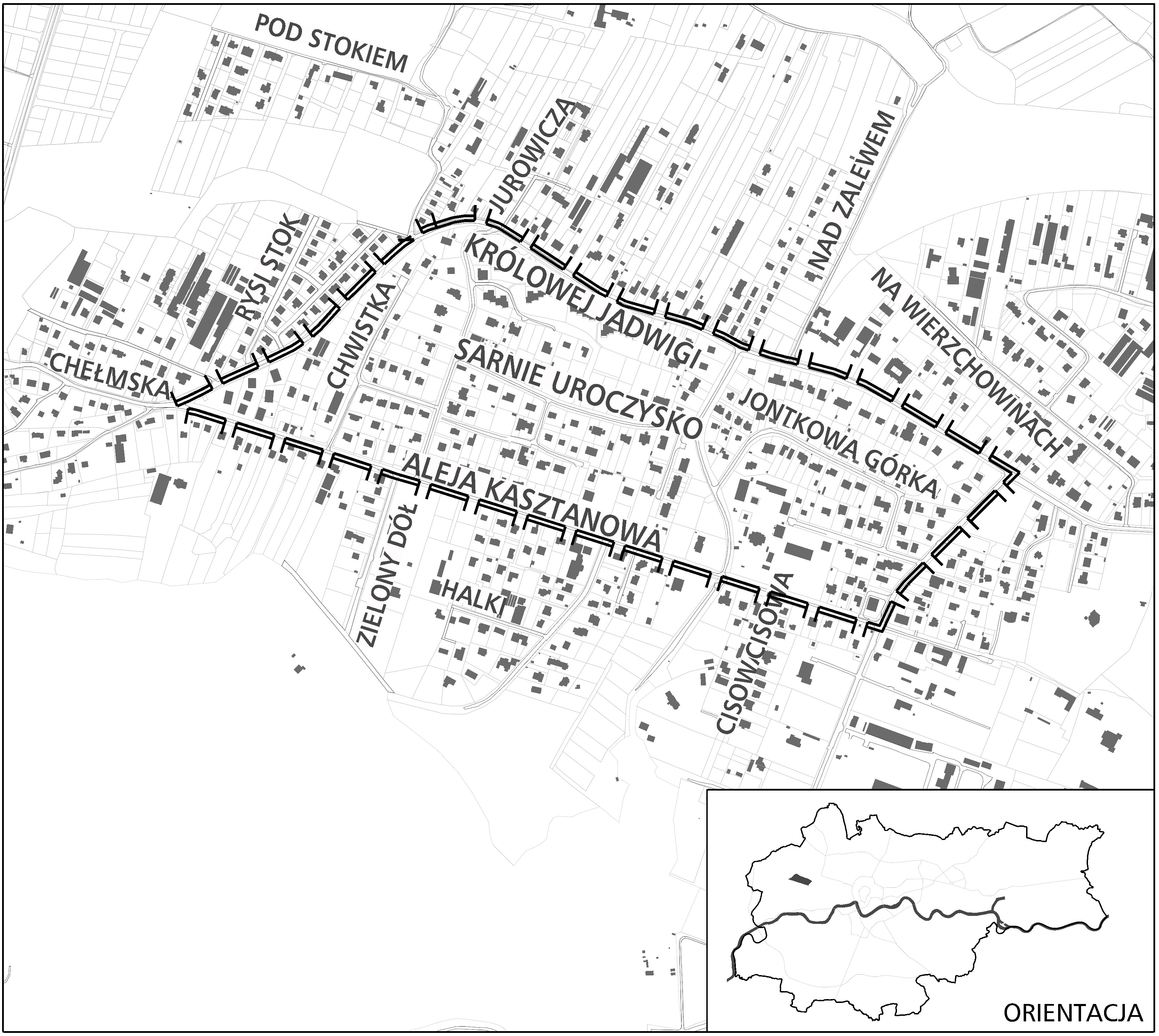 Fragment z uzasadnienia przystąpienia do sporządzenia planu: Plan obejmuje tereny położone w zachodniej części Krakowa, ograniczone ulicami: Kasztanową, Modrzewiową, Królowej Jadwigi oraz ulicą Junacką. Ze względu na występowanie terenów niezabudowanych oraz na willowy charakter zabudowy w tym rejonie, usytuowanym w bliskim sąsiedztwie Lasu Wolskiego, obszar ten jest szczególnie atrakcyjny dla działań inwestycyjnych. Brak kontroli uregulowań planistycznych może przynieść ujemny efekt dla urbanistycznego wizerunku tego rejonu oraz znacznie obniżyć komfort życia mieszkańców. Sporządzanie miejscowego planu wynika z realizacji wniosku nr 36/2009 Komisji Planowania Przestrzennego i Ochrony Środowiska Rady Miasta Krakowa z dnia 20 stycznia 2009 r. dotyczącej analizy zasadności odstąpienia od sporządzania mpzp obszarów "Strzelnica" i "Kasztanowa". Wprowadzenie w drodze planu miejscowego klarownych regulacji koordynujących i porządkujących istniejące zagospodarowanie ma na celu uniknięcie chaosu obniżającego wartość przestrzeni. Ponadto rolą tego planu jest również ochrona miejskiego systemu zieleni publicznej, który jest niezaprzeczalnym atutem tego obszaru reprezentującego najwyższe wartości podnoszące atrakcyjność miasta Krakowa.