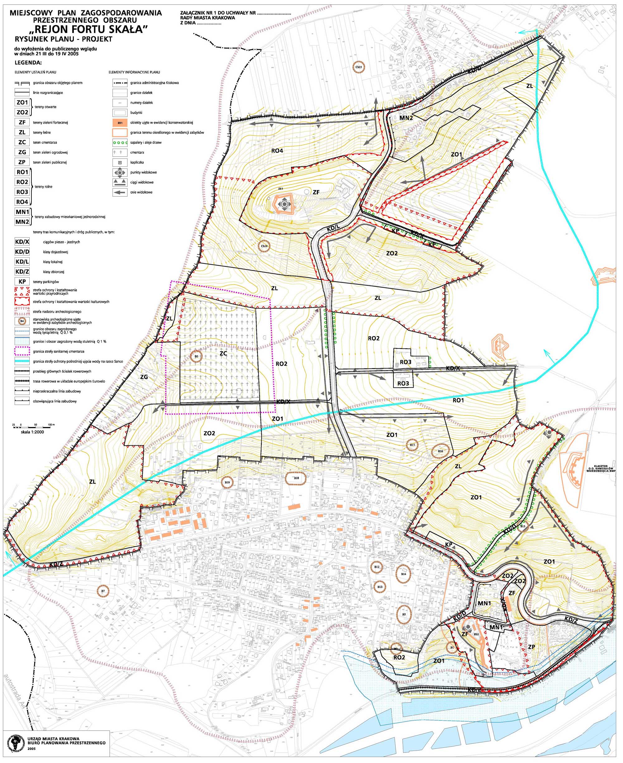 o wyłożeniu do publicznego wglądu projektu miejscowego planu zagospodarowania przestrzennego obszaru "Rejon Fortu Skała", obejmującego teren w rejonie Bielan, zawarty pomiędzy Lasem Wolskim a zachodnią granicą miasta oraz o wyłożeniu prognozy oddziaływania na środowisko, sporządzonej do w/w planu - w dniach od 21 marca do 19 kwietnia 2005 r. (z wyjątkiem sobót i niedziel), w Biurze Planowania Przestrzennego Urzędu Miasta Krakowa, ul. Za Torem 22, w godzinach: