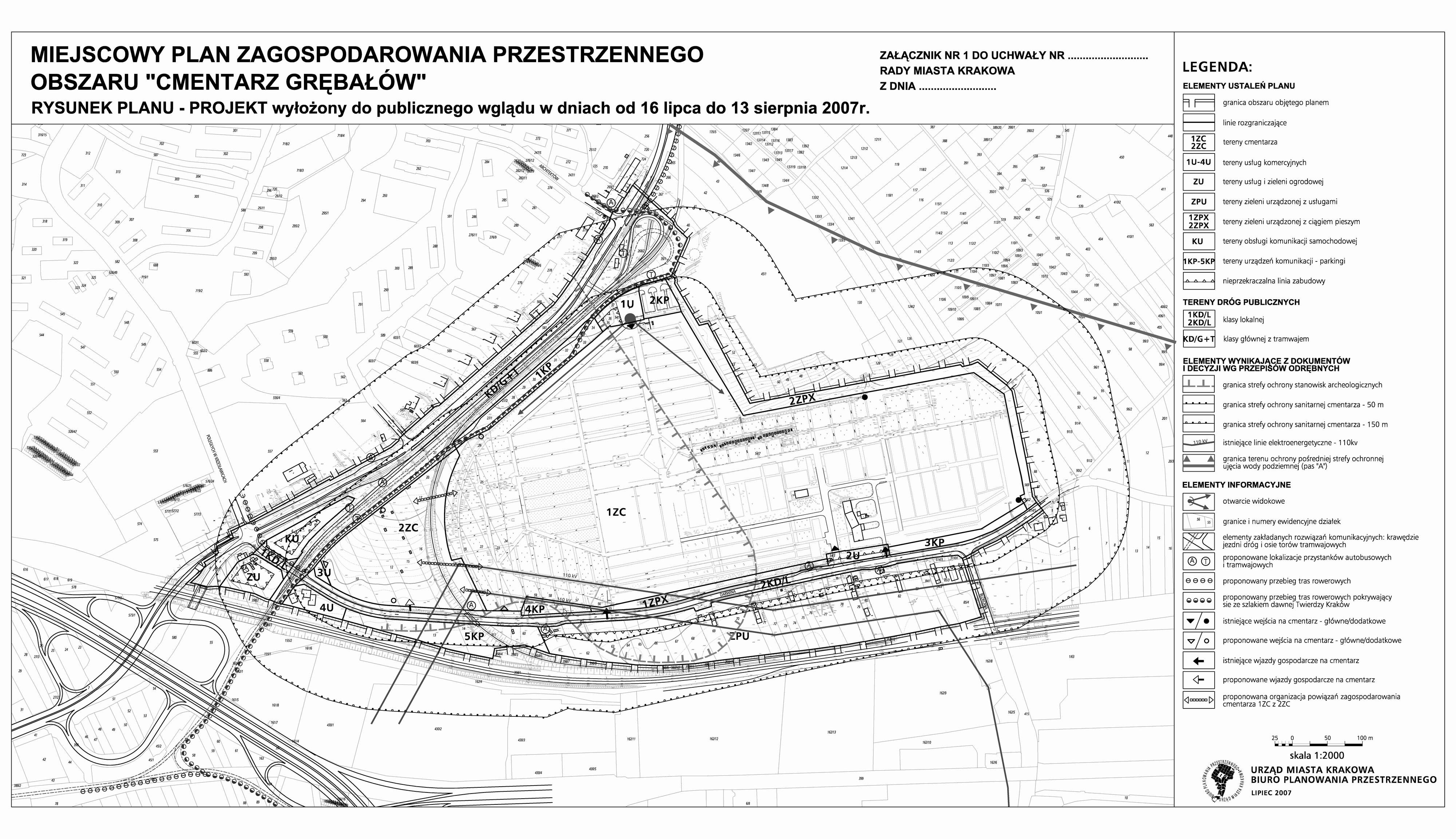o wyłożeniu do publicznego wglądu projektu miejscowego planu zagospodarowania przestrzennego obszaru "Cmentarz Grębałów", oraz o wyłożeniu prognozy oddziaływania na środowisko, sporządzonej do w/w planu – w dniach od 16 lipca do 13 sierpnia 2007 r. (z wyjątkiem sobót, niedziel i świąt), w Biurze Planowania Przestrzennego Urzędu Miasta Krakowa, ul. Sarego 4, 31-047 Kraków, w godzinach: