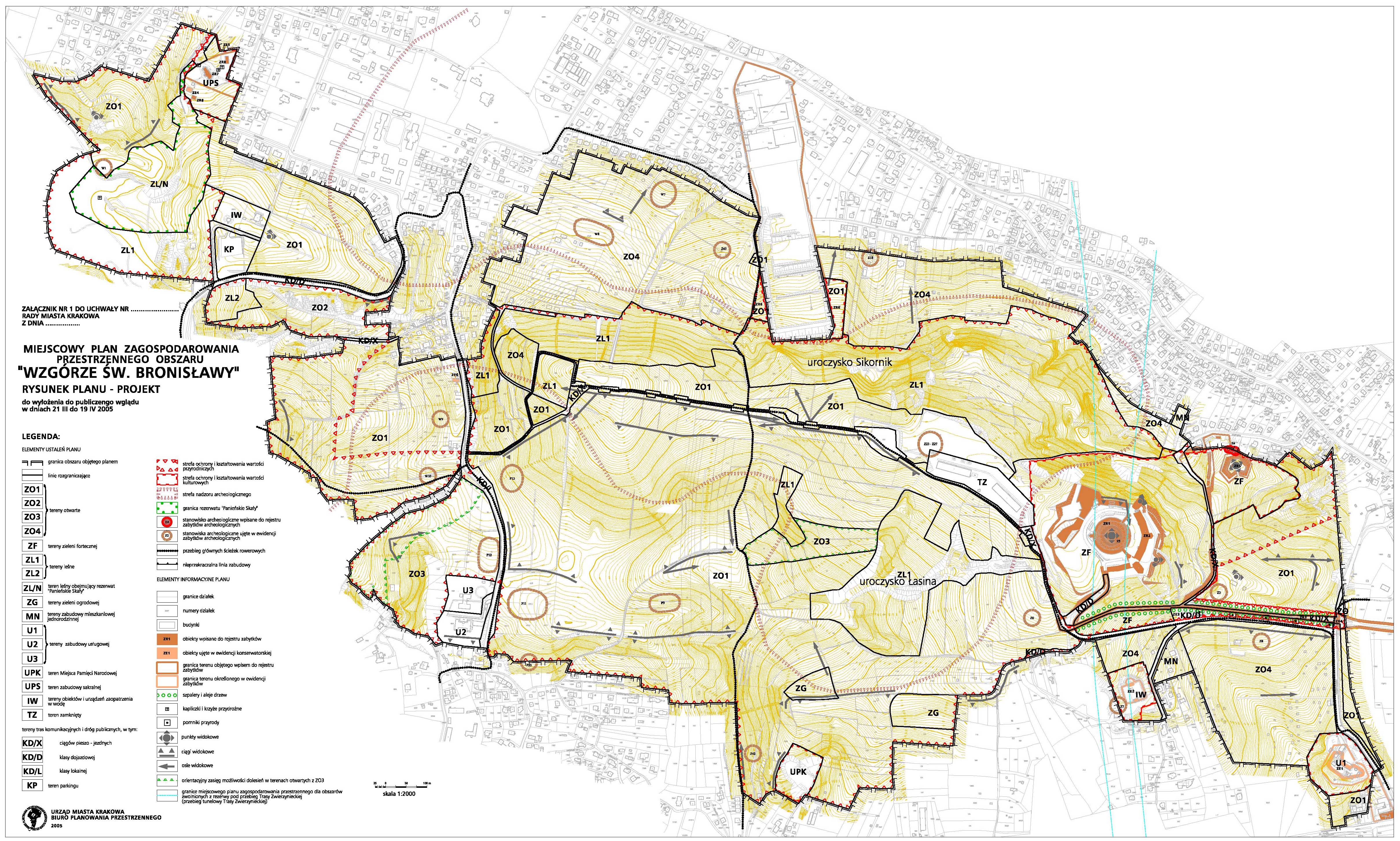 o wyłożeniu do publicznego wglądu projektu miejscowego planu zagospodarowania przestrzennego obszaru "Wzgórze Św. Bronisławy", obejmującego tereny w rejonie Kopca Kościuszki, Sikornika i Wesołej Polany, zawarte pomiędzy kolonią mieszkalną na Salwatorze a wschodnią granicą Lasu Wolskiego oraz o wyłożeniu prognozy oddziaływania na środowisko, sporządzonej do w/w planu – w dniach od 21 marca do 19 kwietnia 2005 r. (z wyjątkiem sobót i niedziel), w Biurze Planowania Przestrzennego Urzędu Miasta Krakowa, ul. Za Torem 22, w godzinach: