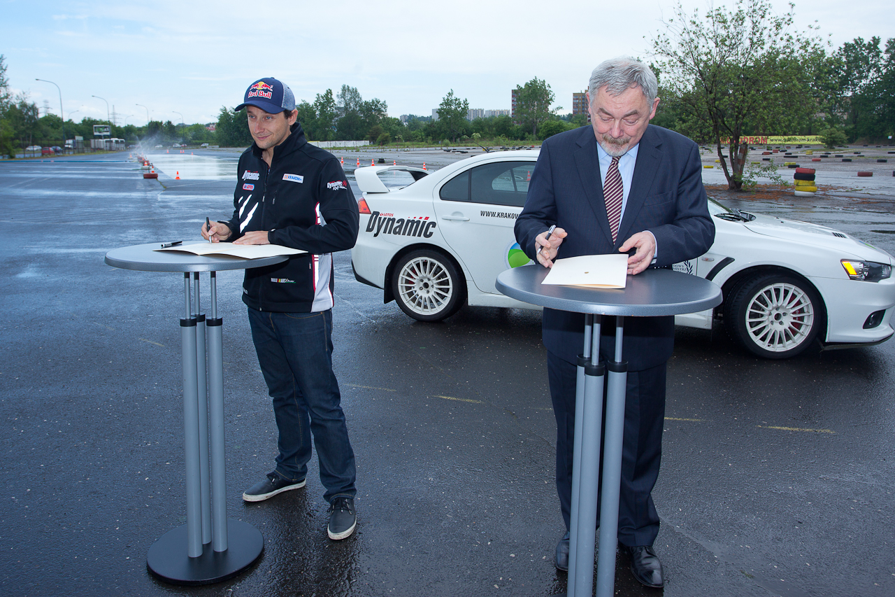 Uroczyste podpisanie listu intencyjnego przedłużającego na kolejny, 2012 rok, współpracę promocyjną Krakowa i kierowcy rajdowego Michała Kościuszki odbyło się 28 maja na terenie Ośrodka Szkolenia Kierowców MOTODROM, przy ul. Stella-Sawickiego.