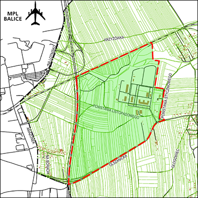 Fragment z uzasadnienia przystąpienia do sporządzenia planu: Celem planu będzie stworzenie warunków formalno–prawnych dla prawidłowego funkcjonowania obszaru w zgodzie z zasadą ładu przestrzennego i nowoczesnego rozwoju tego rejonu miasta. Plan stworzy warunki dla prawidłowej rozbudowy i przebudowy układu komunikacyjnego oraz pozwoli na ukształtowanie systemu ciągów zieleni i tras rowerowych integrujących teren otoczenia Portu lotniczego Kraków - Balice z ważniejszymi elementami struktury funkcjonalno przestrzennej miasta. Objęcie przedmiotowego terenu planem miejscowym pozwoli na skuteczną kontrolę zmian w zagospodarowaniu, a także zapobiegnie niekorzystnym przekształceniom obszaru, jakie potencjalnie mogą nastąpić w wyniku indywidualnych decyzji administracyjnych.