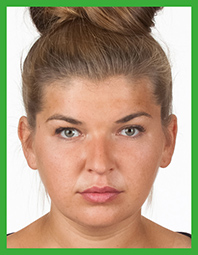 Zdjęcie musi przedstawiać Twój aktualny wizerunek w pozycji frontalnej, z zachowaniem symetrii w pionie, na jasnym, jednolitym tle.