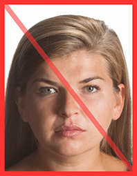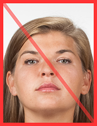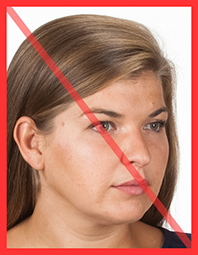 Na zdjęciu musisz patrzeć na wprost i mieć naturalny wyraz twarzy (bez uśmiechu). Usta muszą być zamknięte. Twarz nie może być przysłonięta włosami, a brwi, oczy i źrenice muszą być widoczne (nie mogą nachodzić na nie ramki okularów). Wymogi te nie muszą być spełnione, jeżeli nie pozwala na to Twój stan zdrowia.
