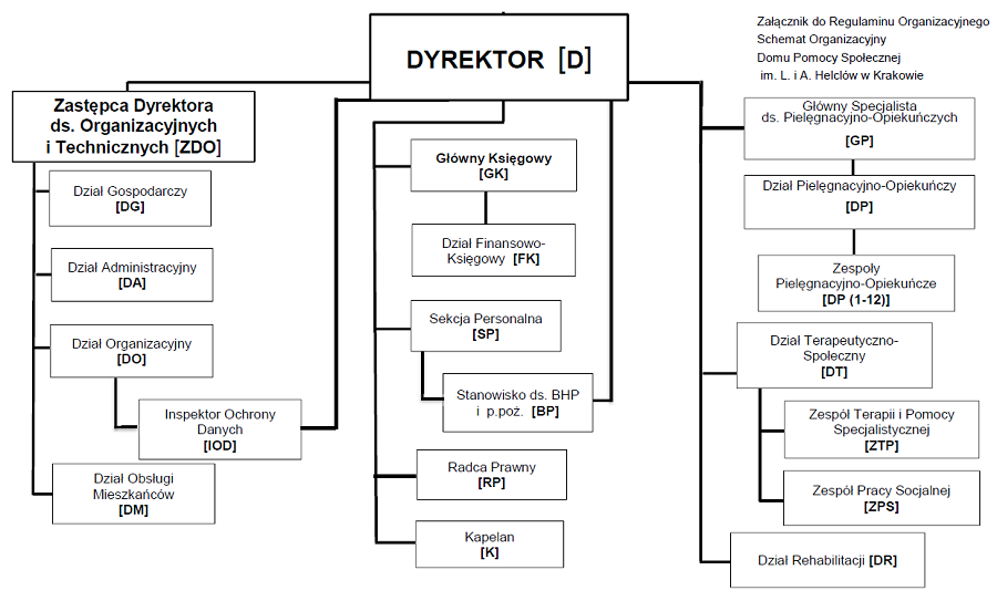 Komórki organizacyjne i stanowiska wchodzące w skład Domu Pomocy Społecznej im. L. i A. Helclów w Krakowie: