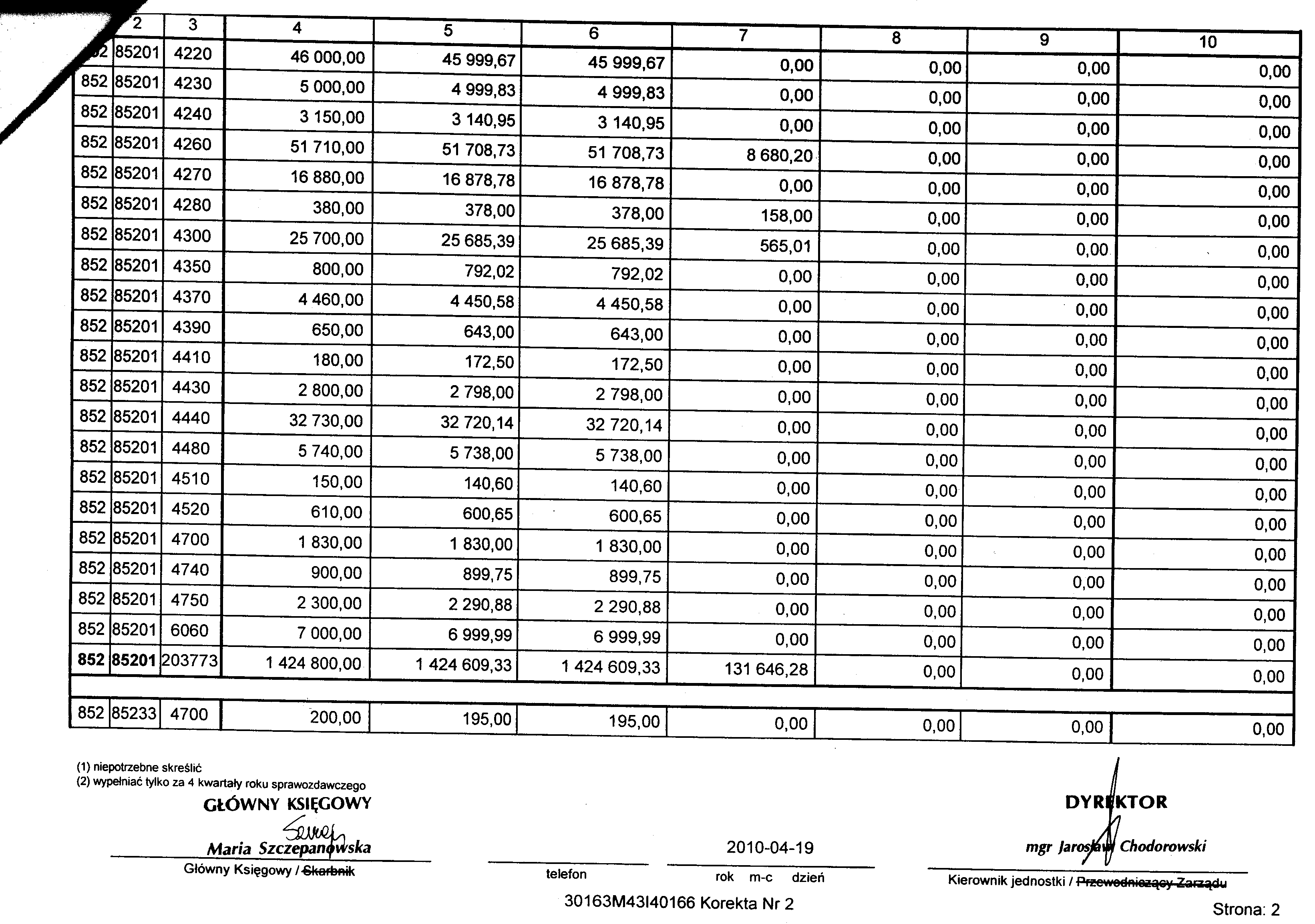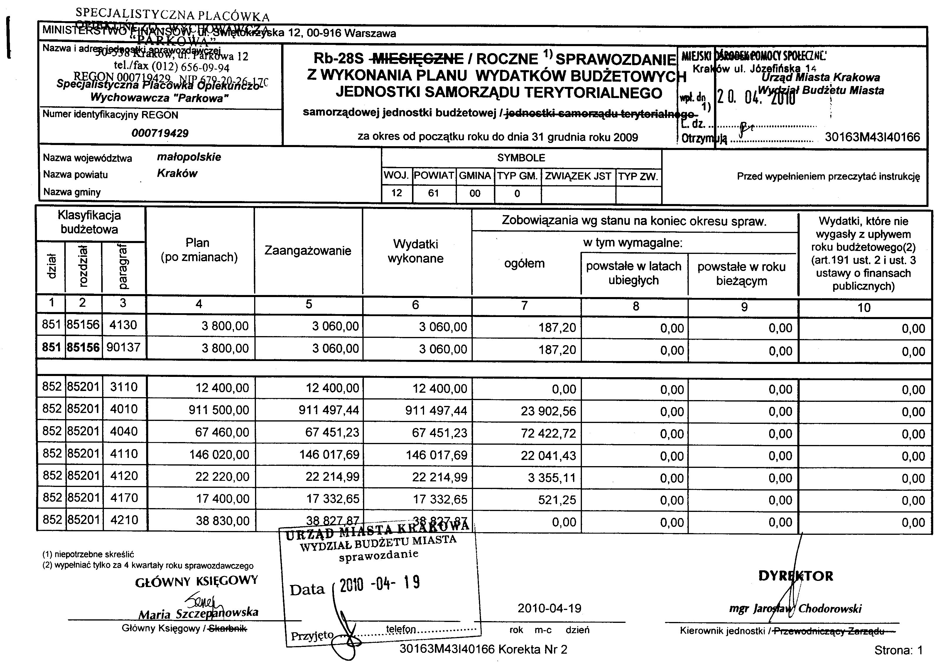 - Majątek SPOW "Parkowa" wg stanu na dzień 31.12.2009r.